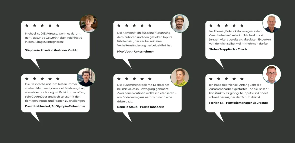 Heute begleitet Michael Weber als Sparring-Partner für gesunde Gewohnheiten unzählige Menschen und namhafte Firmen dabei, nachhaltig und konstant in die Umsetzung zu kommen.